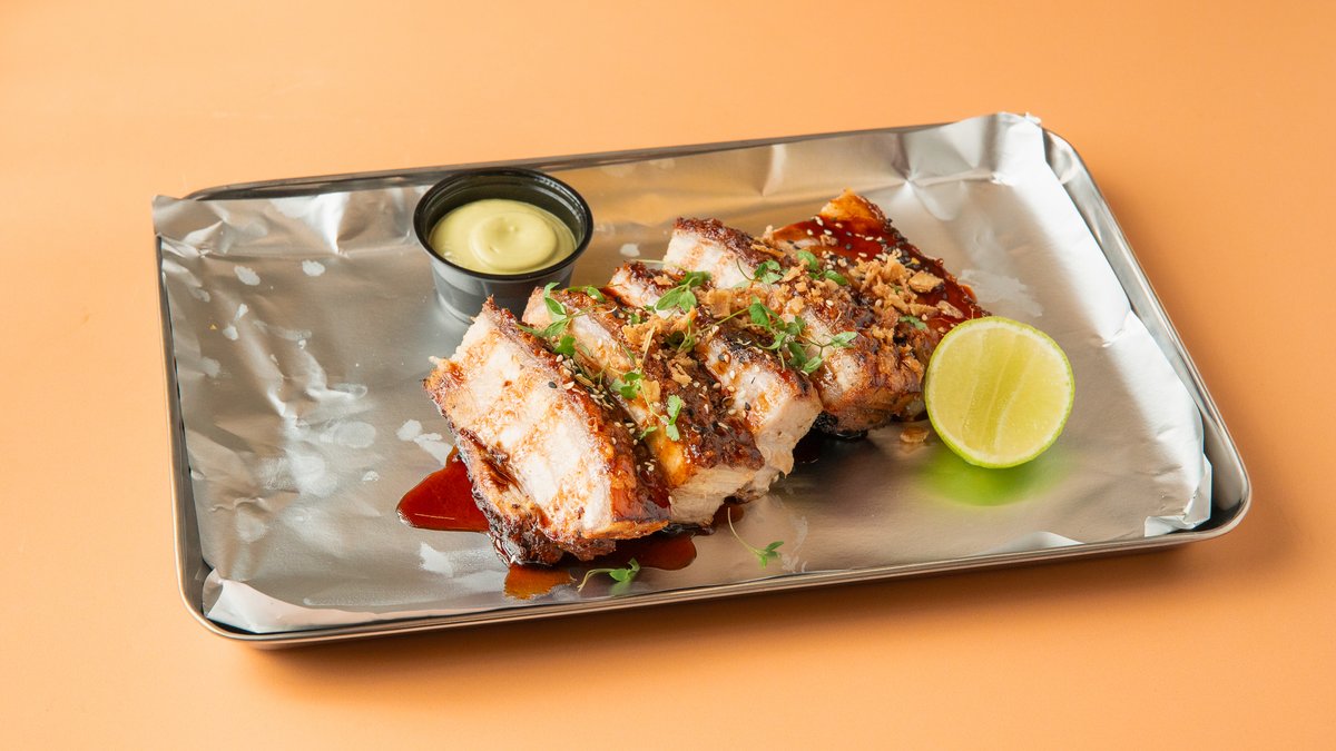 Crispy pork belly, parsley mayonnaise, soy & honey glaze, crispy onion, sesame, lime