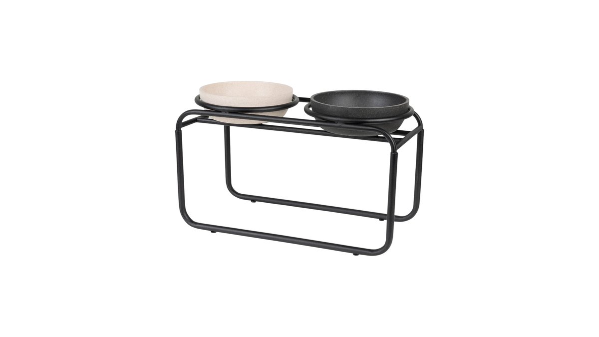 Bowl set, ceramic/wood, 2 × 0.4 l/13 × 13 cm/36 × 7 × 19 cm, black/light brown