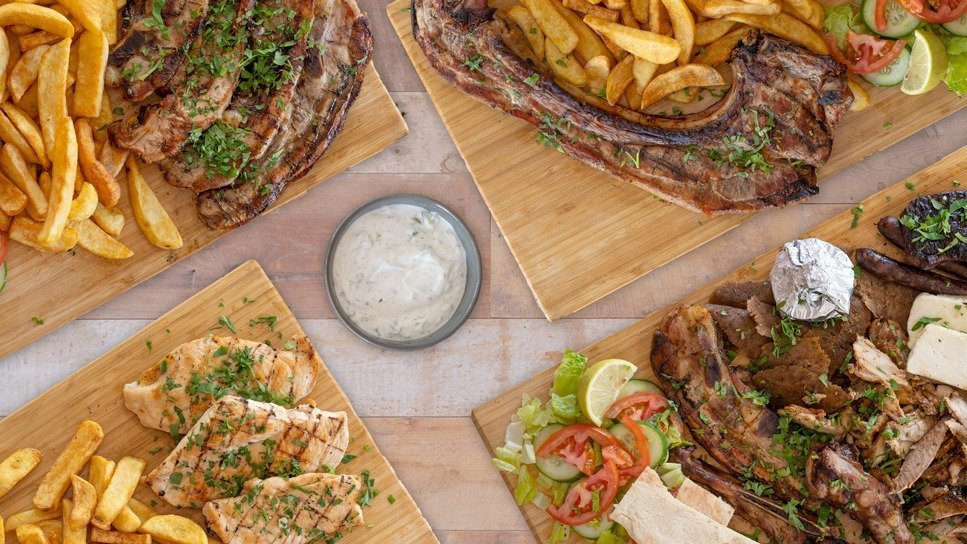 Gyros in pita and brioche, club sandwiches, dirty fries, grill, and salads that will blow your mind!