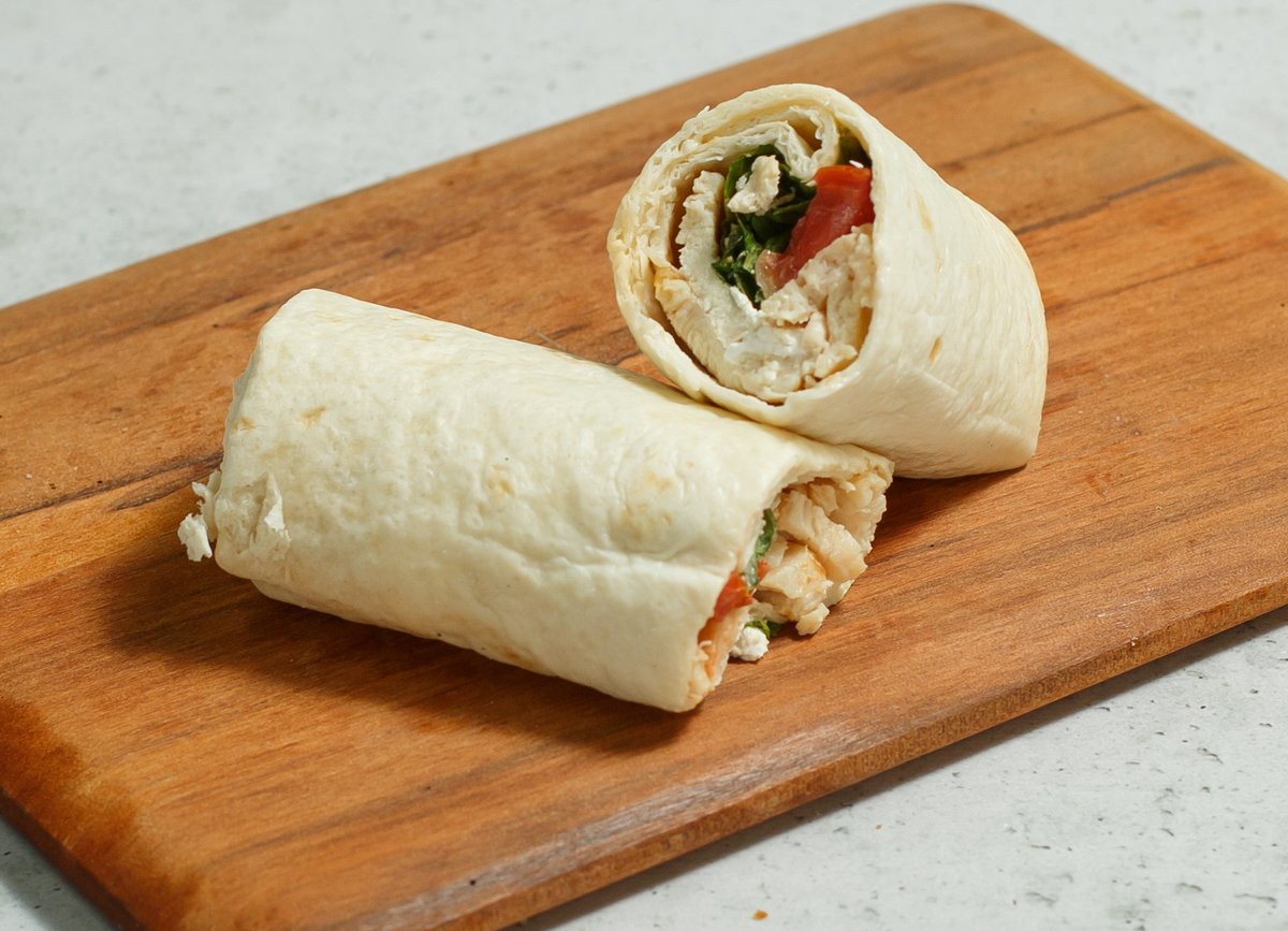 Tortilla wrap, chicken fillet, white cheese, tomato and lettuce