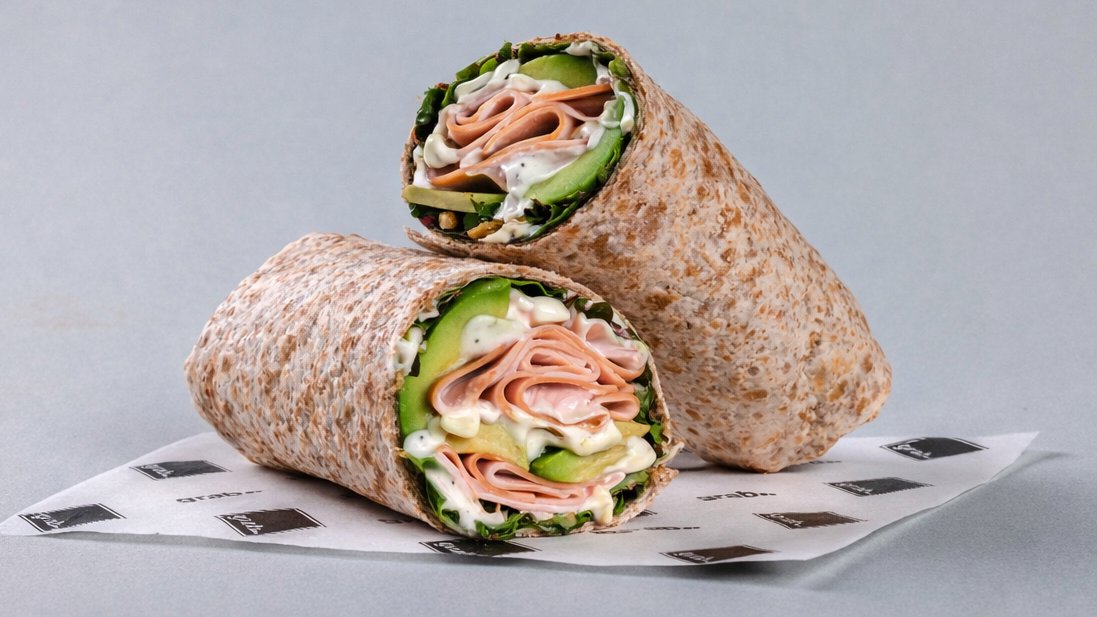 Smoked turkey slices, provolone cheese, avocado, crunchy lettuce, homemade tartare sauce, wholegrain tortilla.