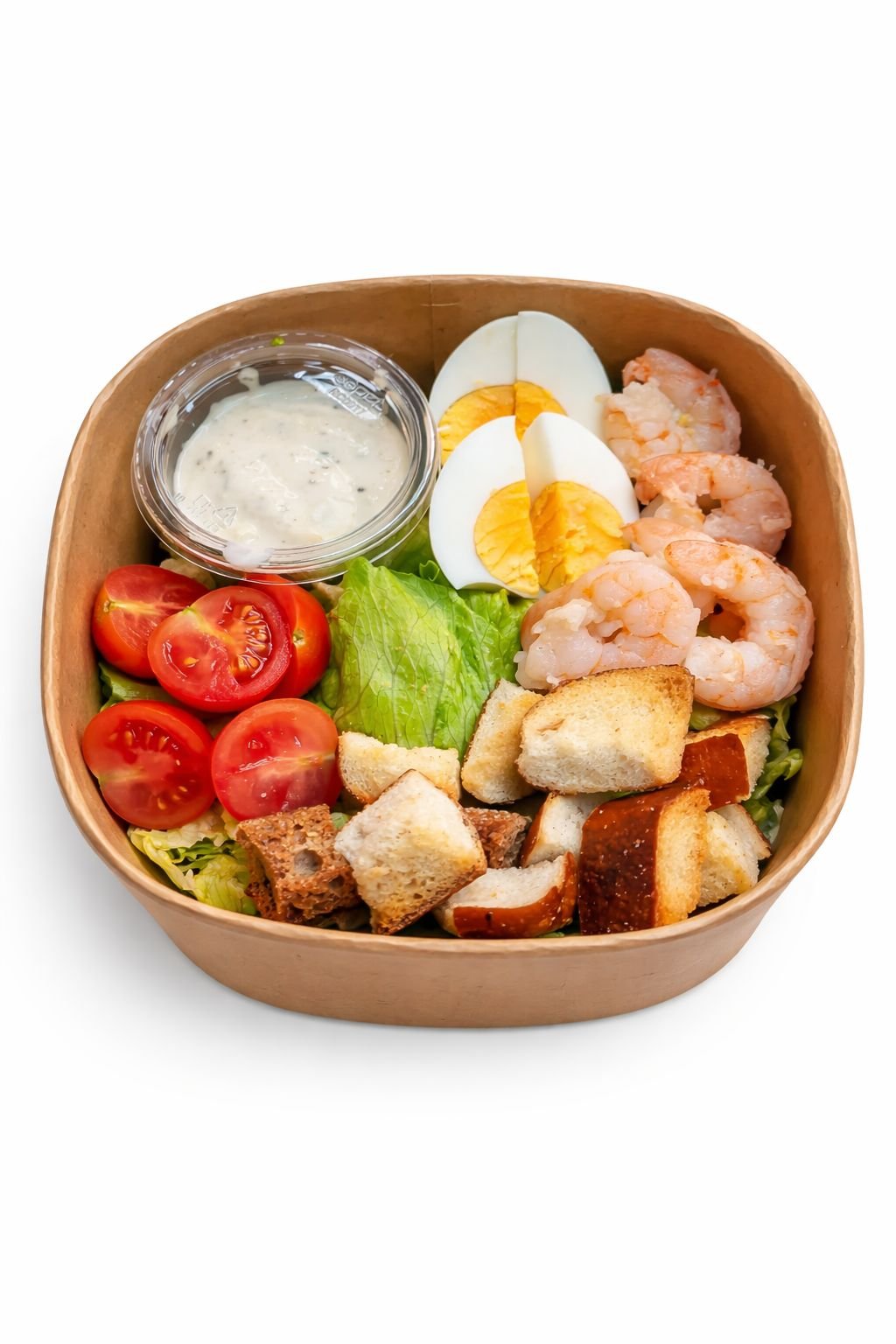Shrimp with iceberg lettuce, croutons, parmesan & Caesar dressing. 250 g