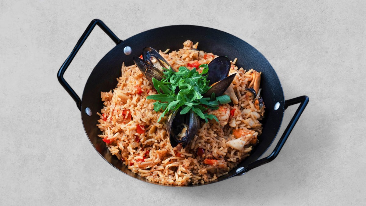 A flavorful mix of saffron-infused rice, shrimp, mussels, clams, and calamari, tomato sauce, cooked to perfection.