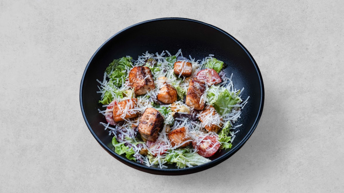 grilled chicken, lettuce, tomato, cucumber, red onion, dressing caesar, garlic paste, unagi sauce