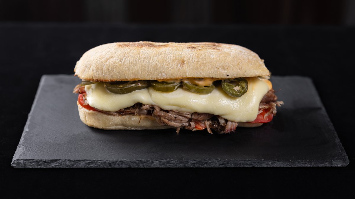 pulled pork, tomato, mozzarella, jalapeno, mustard sauce