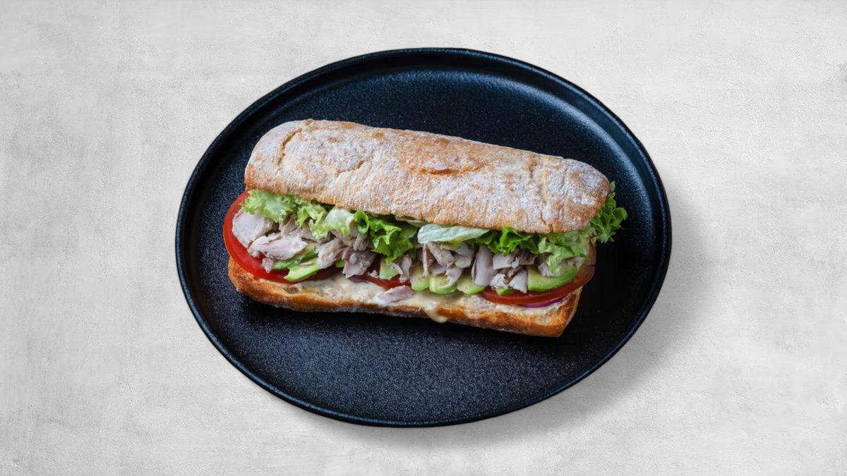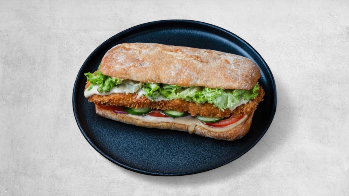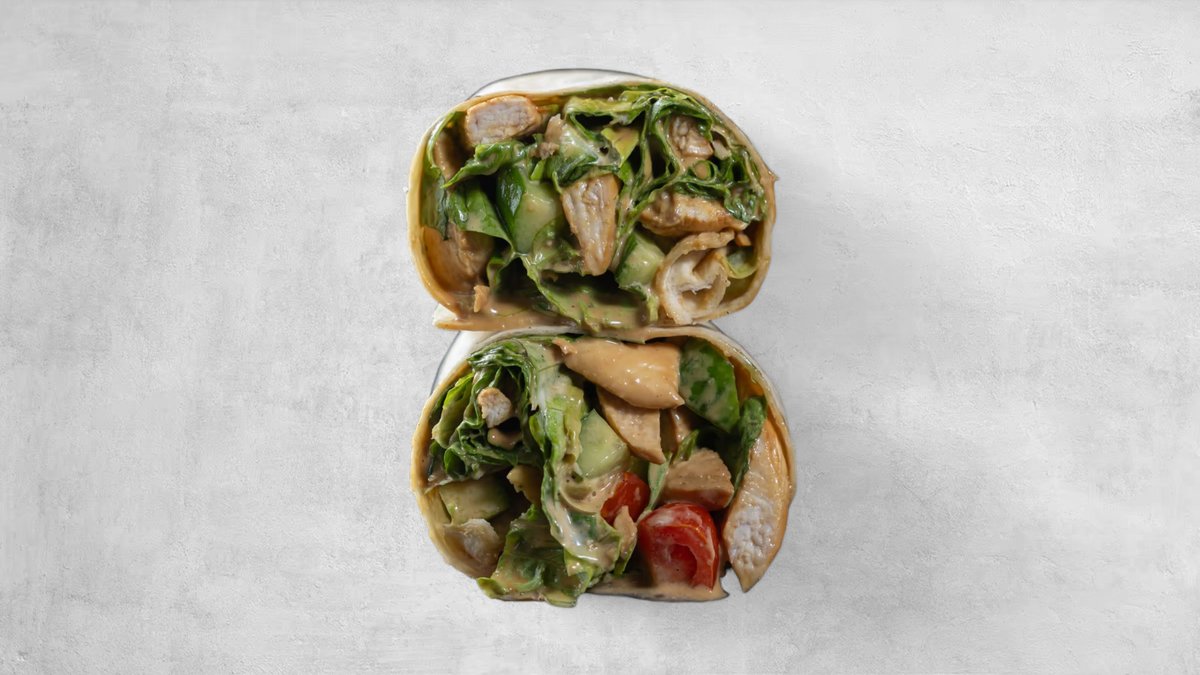 Chicken, tomato, lettuce, cheese, caesar sauce, garlic paste, soy sauce