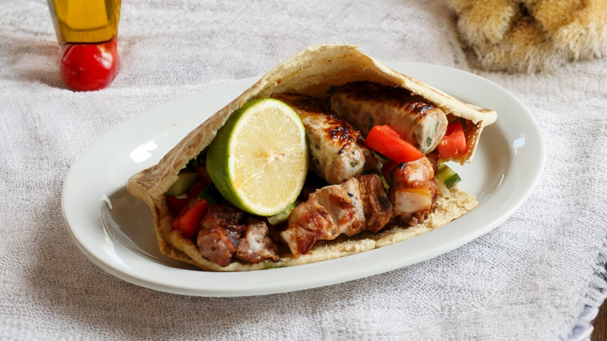 Χοιρινό Σουβλάκι & Σεφταλιές Κυπριακή Πίτα