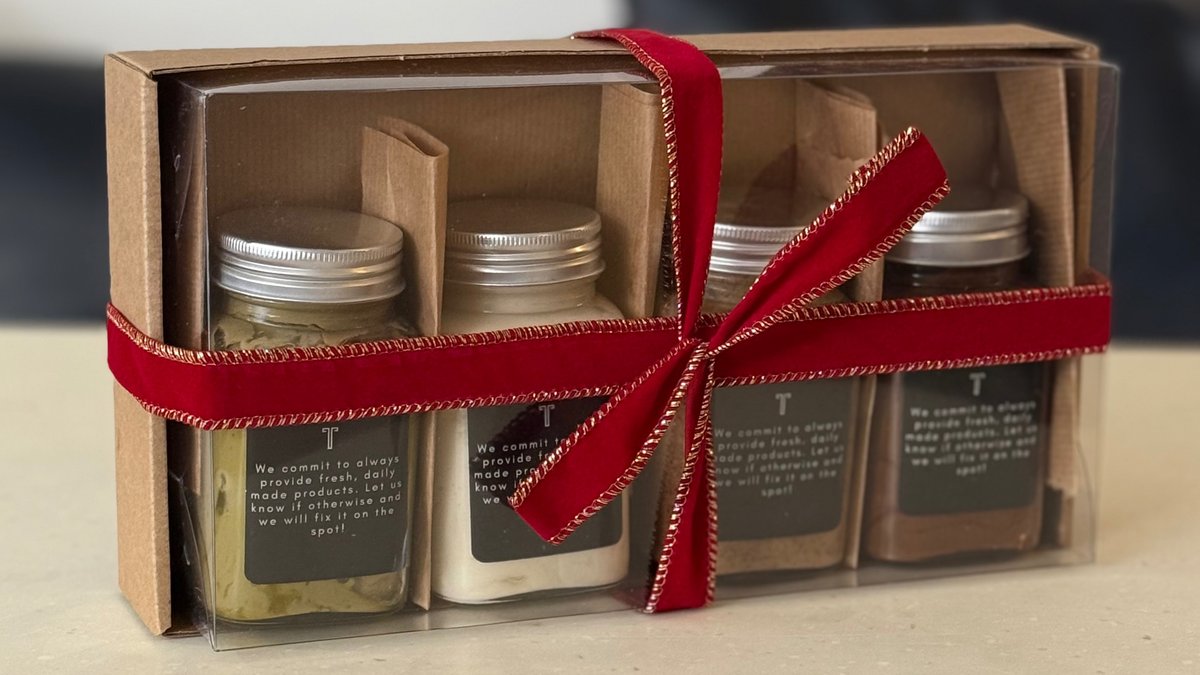 4 x premium spread : 1.huzelnut cream 2.pistachio cream 3.white chocolate 4.peanut butter
