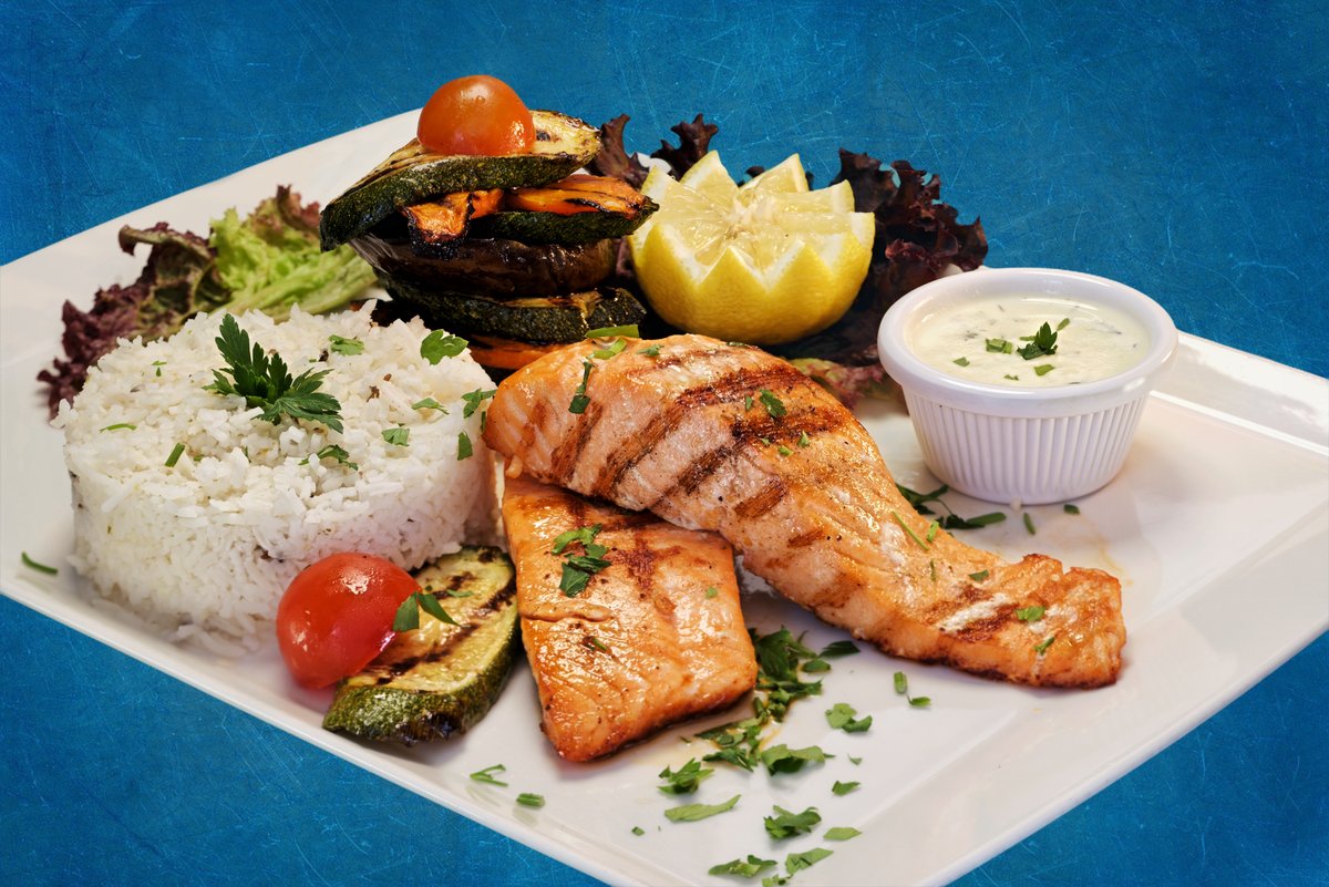 Served with vegetable rice, grilled vegetables and mediterranean sauce