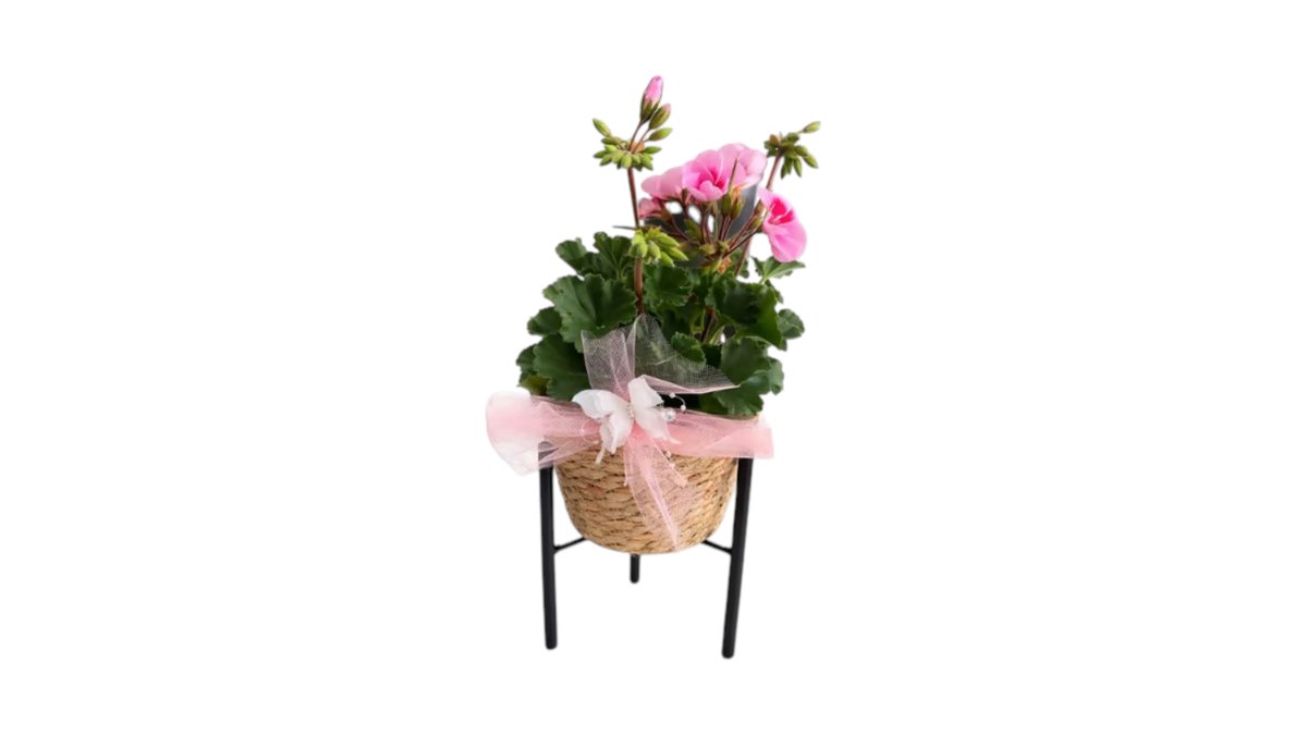 Elegant Pink Geranium in Decorative Basket Stand