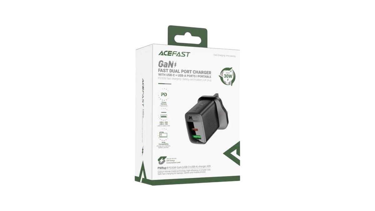 Acefast A99 PD30W GaN (USB-C+USB-A) charger,black (UK)