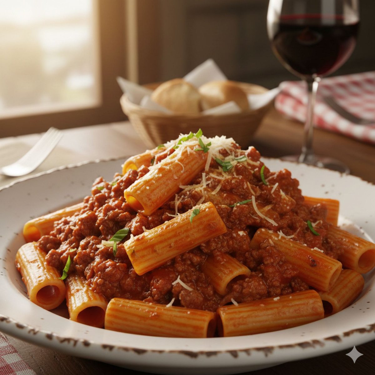 Rigatoni pasta,beef and pork mince,appetit tomato sauce