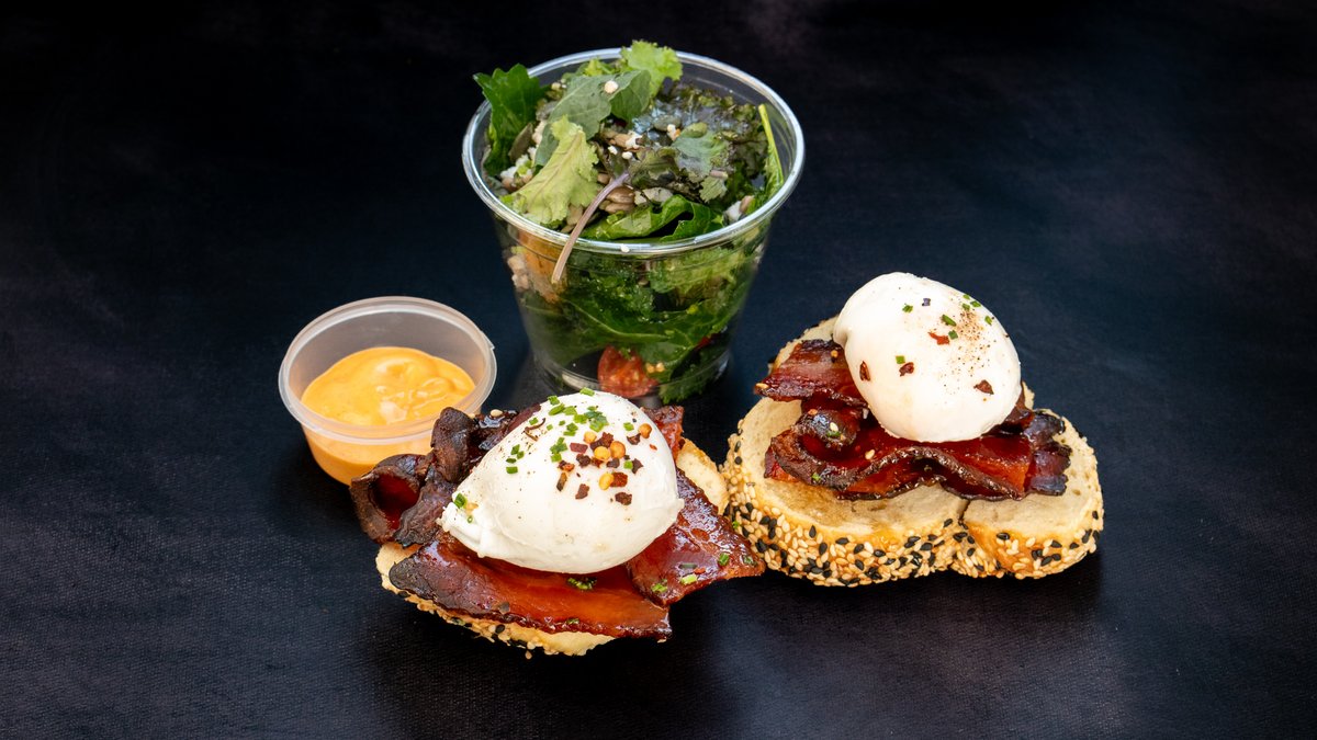 Egg Benedict With Maple Glazed Streaky Bacon