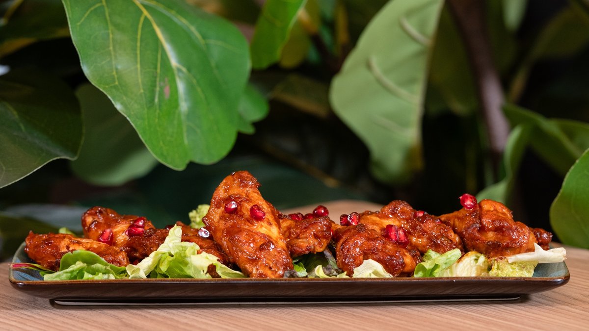 • 8 pcs Wings • BBQ Sause • Pomegranate • Salad Green