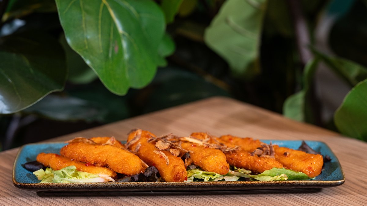 • 7 pcs Chicken Strips • Sweet Chilly Sauce • Crispy Onion • Salad Green