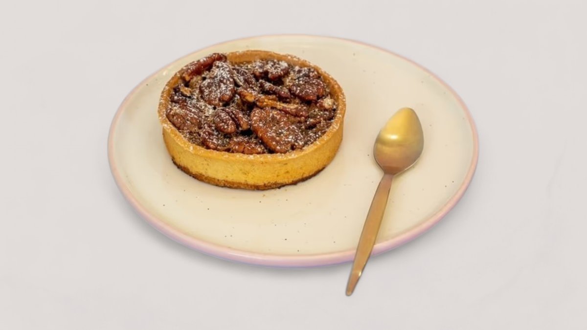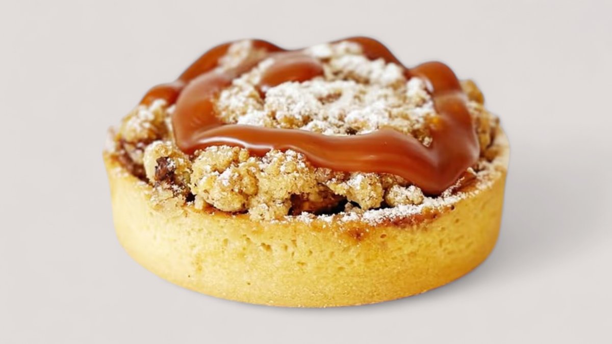 A golden buttery tart filled with tender caramel-coated apples, topped with a crunchy walnut crumble and a hint of warm cinnamon. Sweet, spiced, and perfectly comforting in every bite.
