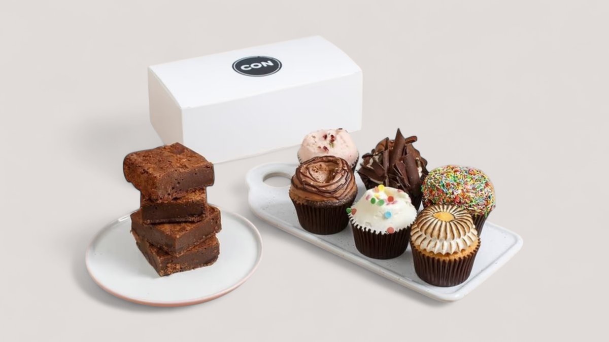 6 cupcakes, 3 brownies and 3 tarts of your choosing