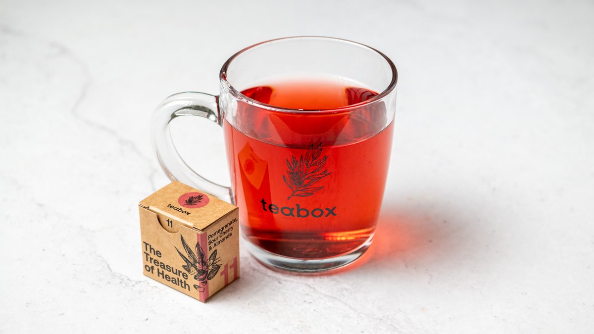 Pomegranate, Sour Cherry & Almonds A flavory combination of cherries, pomegranate and a scent of almonds that enchants, even the most demanding palate. Cardamom pods that give a mysterious, oriental touch to this tea, will remind you the very characteristic Asian oriental cuisine. Ingredients: apple pieces, hibiscus blossoms, sliced almonds, flavouring, cardamom seeds, beetroot, rose petals, freeze-dried sour cherry pieces, pomegranate arils (lilac). No added flavouring