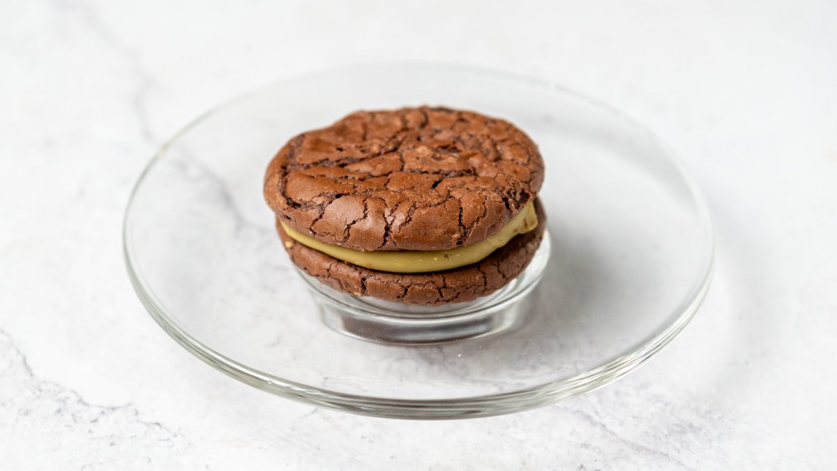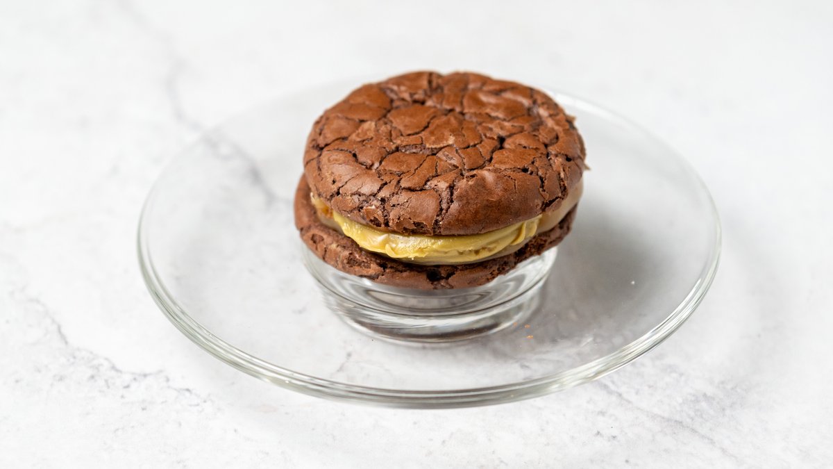 Brownie flavored with wild cherry extract in combination with patisserie cream and fine chocolate mousse. 160gr