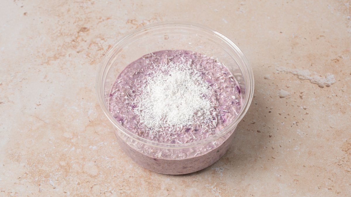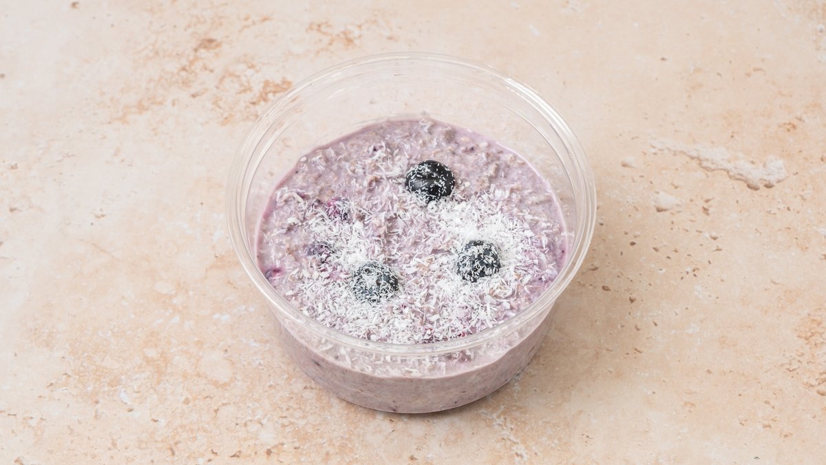 80g Cottage cheese, 1 scoop of chia seeds, 1/2 blueberries, 1/2 strawberries, 1/2 raspberries and ice