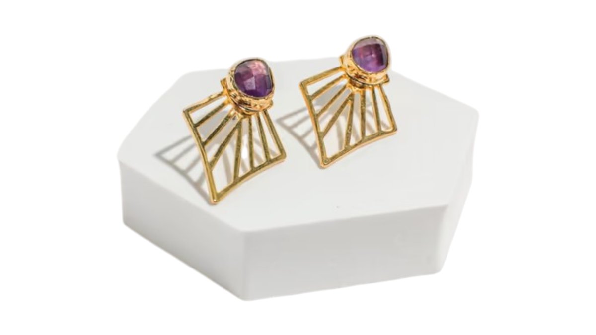 Gold-Plated Brass Earrings with Amethyst Stone