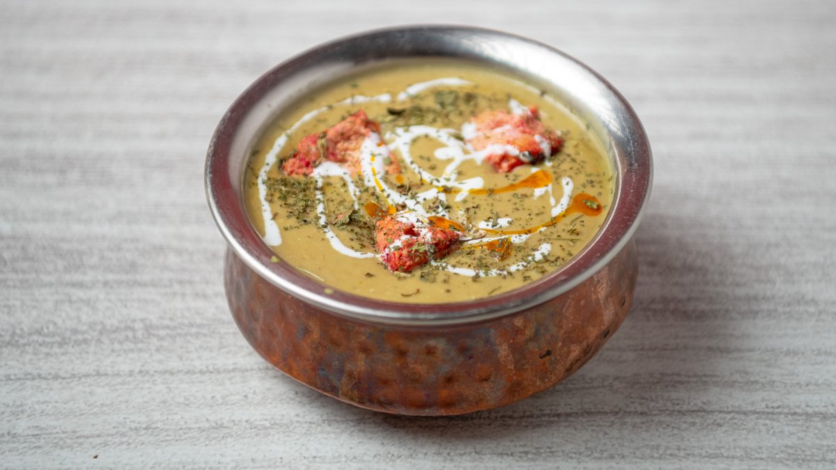 A sweet and sour hot curry, cooked with lentils and fenugreek leaves.