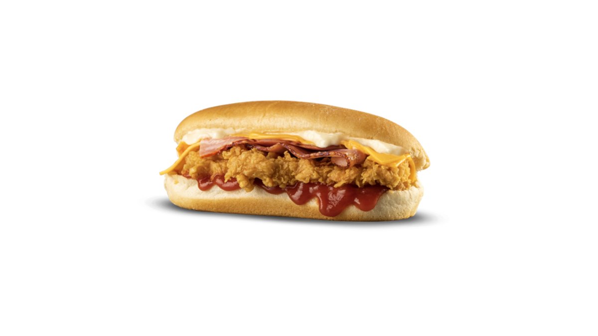Mini chickenburger with bacon, cheese, ketchup, mayo