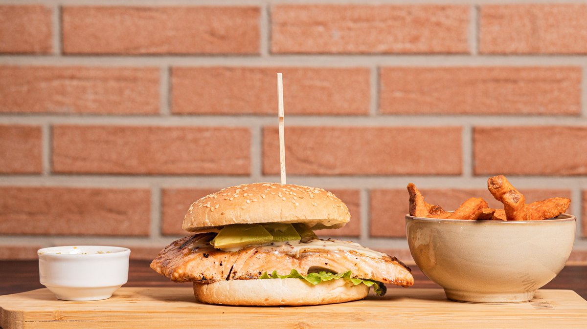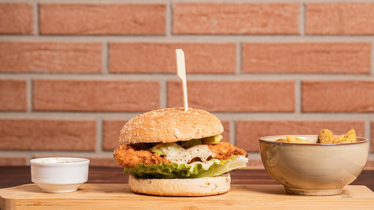 Breaded crispy chicken served on a toasted brioche, lettuce, avocado, and honey mustard sauce. served with wedges and Texas slaw
