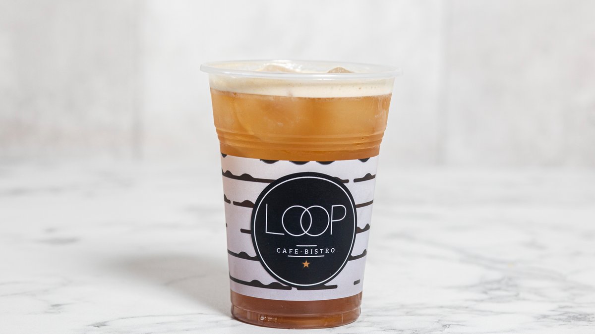 Μαρούλι iceberg , καρότο, σπανάκι, κρουτόν, παρμεζάνα, ελαιόλαδο και σάλτσα σαλάτας Loop, με κοτόπουλο είτε τηγανητό είτε στο φούρνο. Μια δροσερή σαλάτα με τραγανά κρουτόν και τρυφερό κοτόπουλο