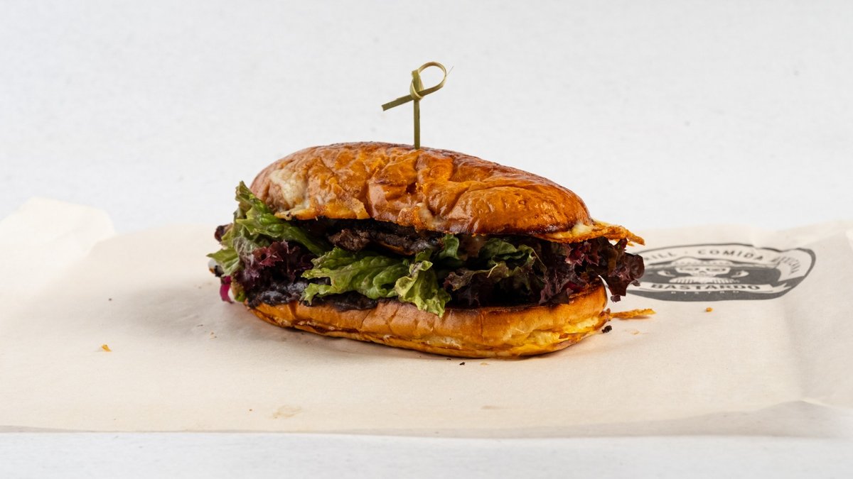 čerstvá bageta, hovězí biftek marinovaný v pivě se směsí bylinek, rajče, fazole, salátový mix, nakládaná cibulka, chipotle majonéza, sýrový chips, salsa dle výběru.