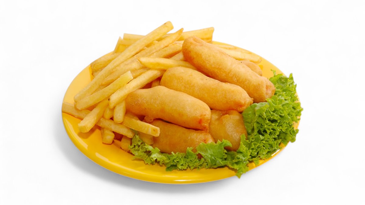 50. Smažené kuřecí kousky s hranolkami