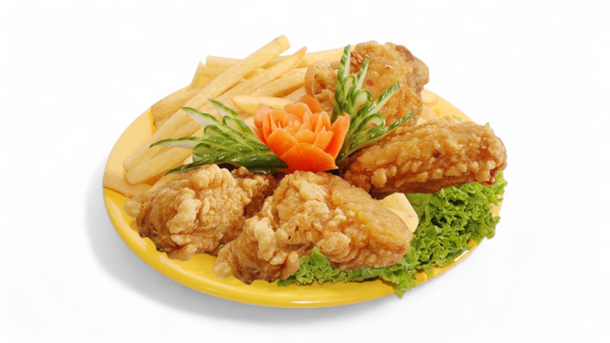 15. Kuřecí křidélka s hranolkami