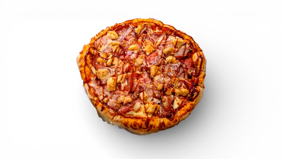 sugo, mozzarella, slanina, salám, cibule, kuřecí maso, bbq