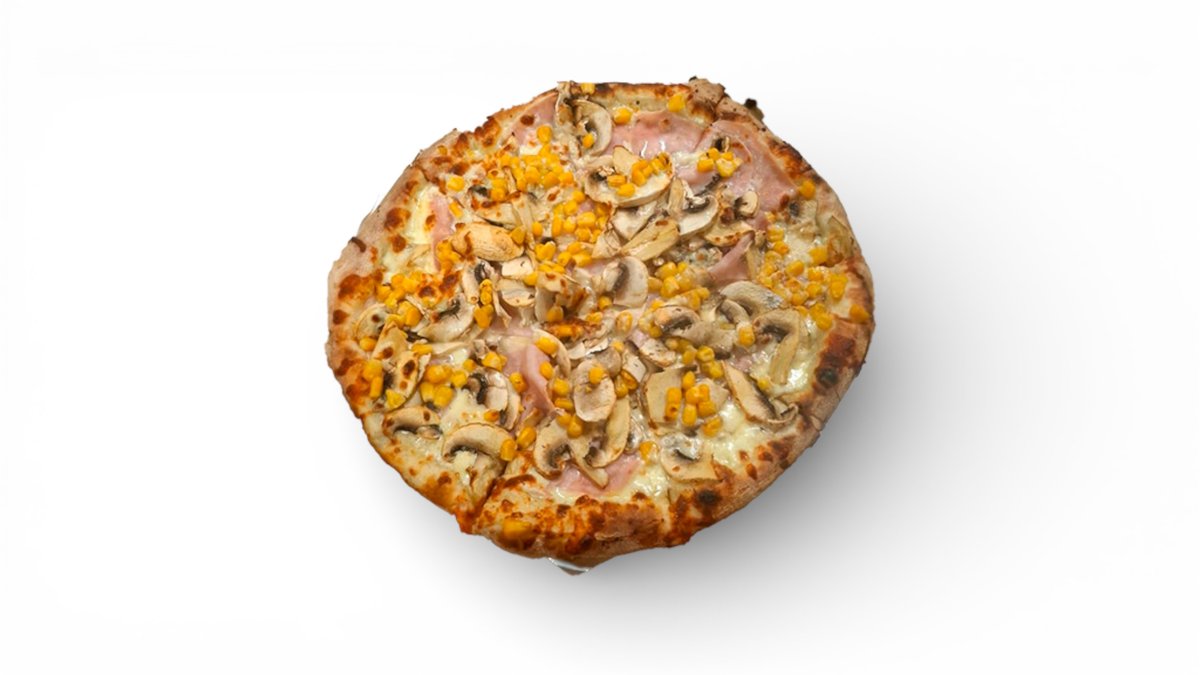 mozzarella, šunka, žampiony, kukuřice, smetana
