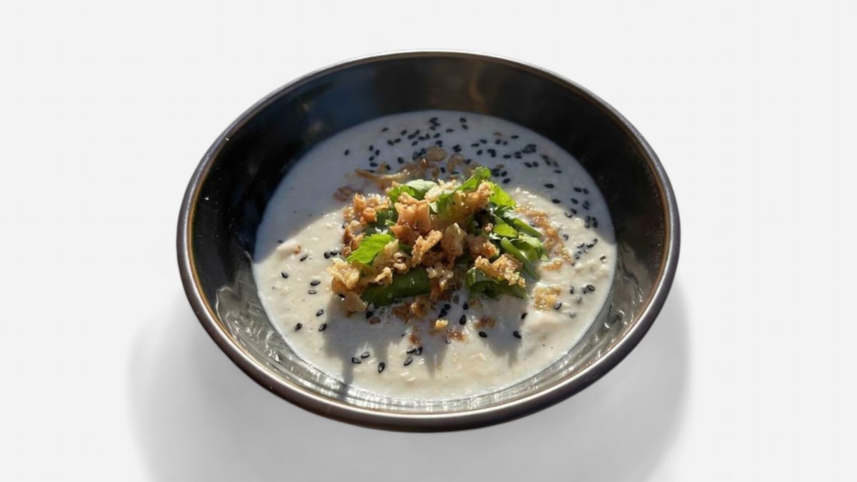 Zdobení: koriandr, smažená cibulka, krutonky, sezamová semínka