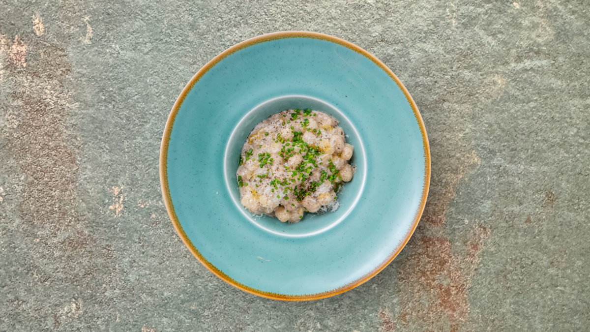 220 gramů domácích bramborových gnocchi v krémové lanýžové omáčce s parmazánem