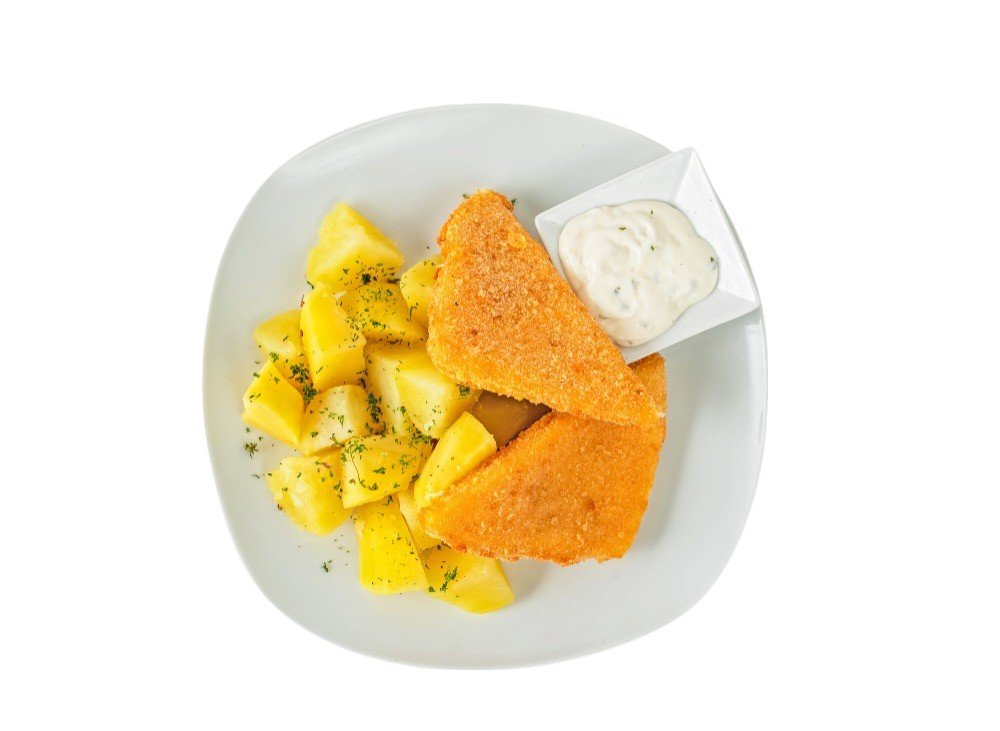 200g Bramborové hranolky 50ml Tatarská omáčka 3ks cibulové kroužky 0,33l Coca cola plech