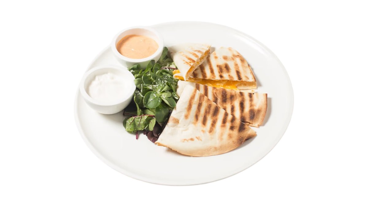250g Quesadilla s vepřovým trhaným masem, tortilla, kukuřice, slanina, sýr, BBQ omáčka, zakysaná smetana