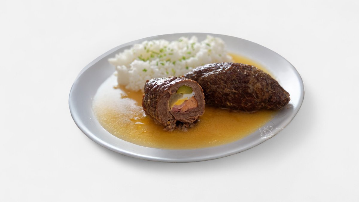 750g vykoštěné pečené přední koleno plněné zelím a klobásou, rozpečený chléb