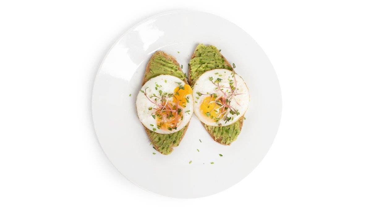 Čerstvý avokádový krém s bezlepkovým chlebem (2ks) a volským okem. Připravujeme osolené a opepřené, pokud to chceš jinak, napiš nám to do objednávky. 270g, 2 ks chleba.