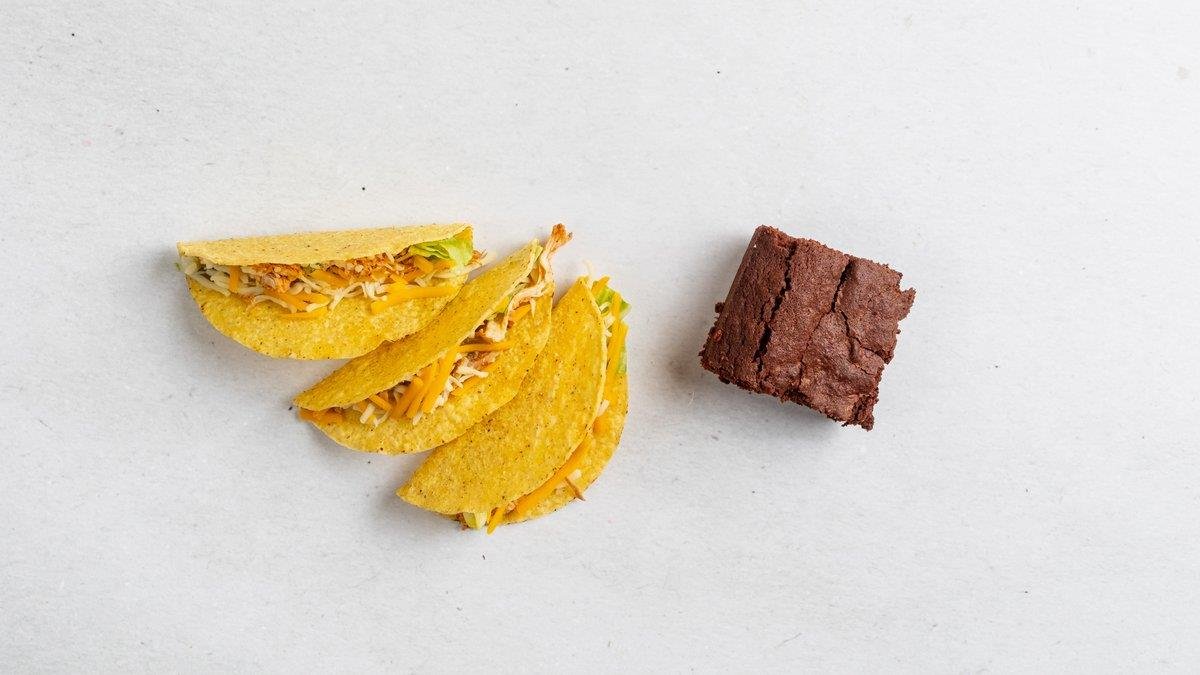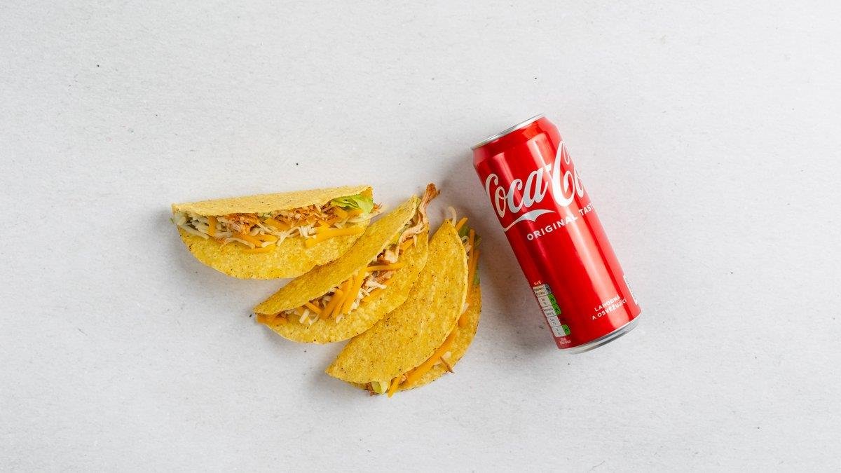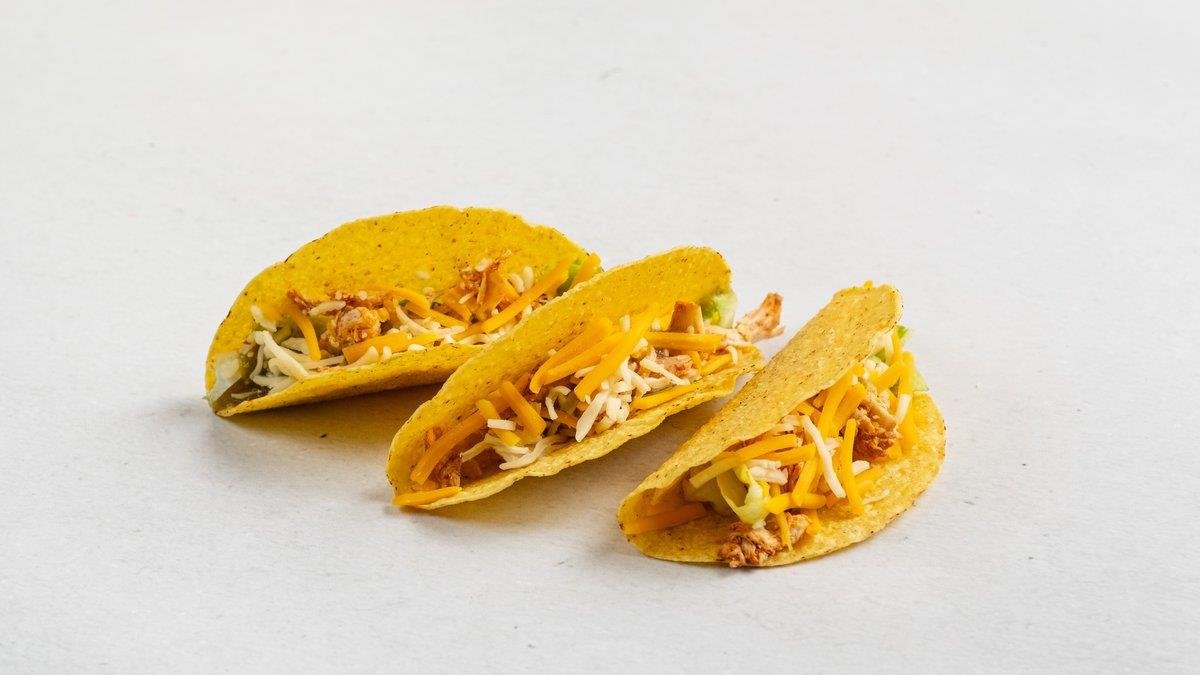 3× taco mušle, ledový, salát, trhané kuřecí maso, salsa, čedar.