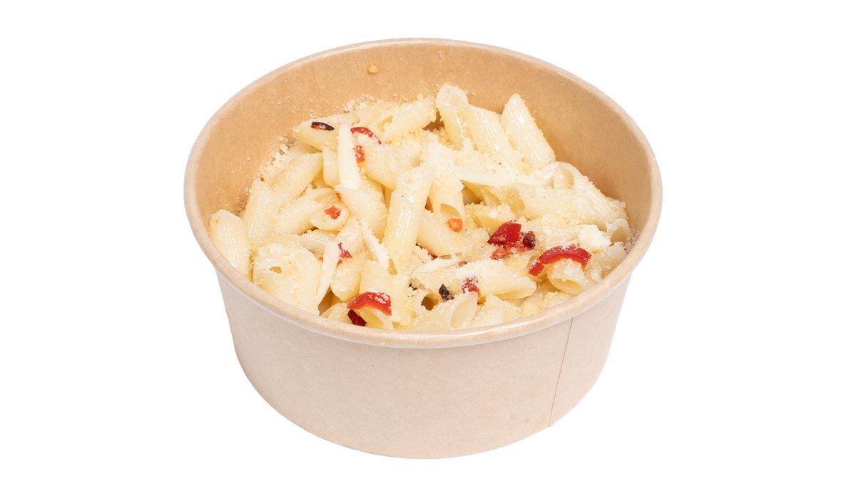 Bezlepkové těstoviny, olej, česnek, čerstvé chilli, grana padano