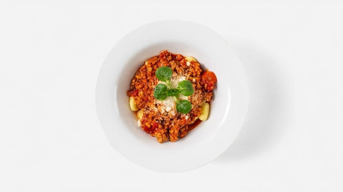 Bezlepkové gnocchi, boloňská omáčka, grana padano