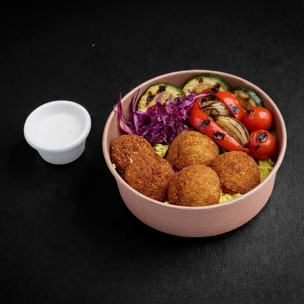 maso, salát, rýže, dresink, na výběr malý / velký talíř