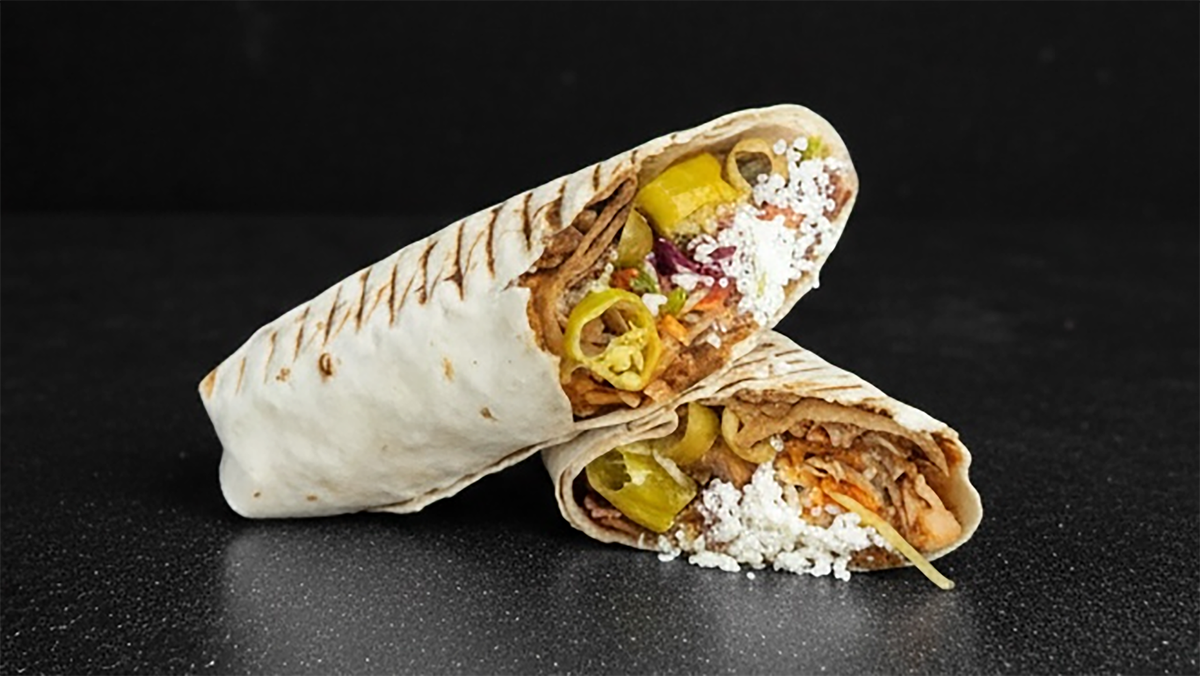 mix salát, sýr, olivy, feferonky, tortilla, dresink