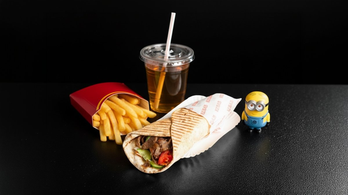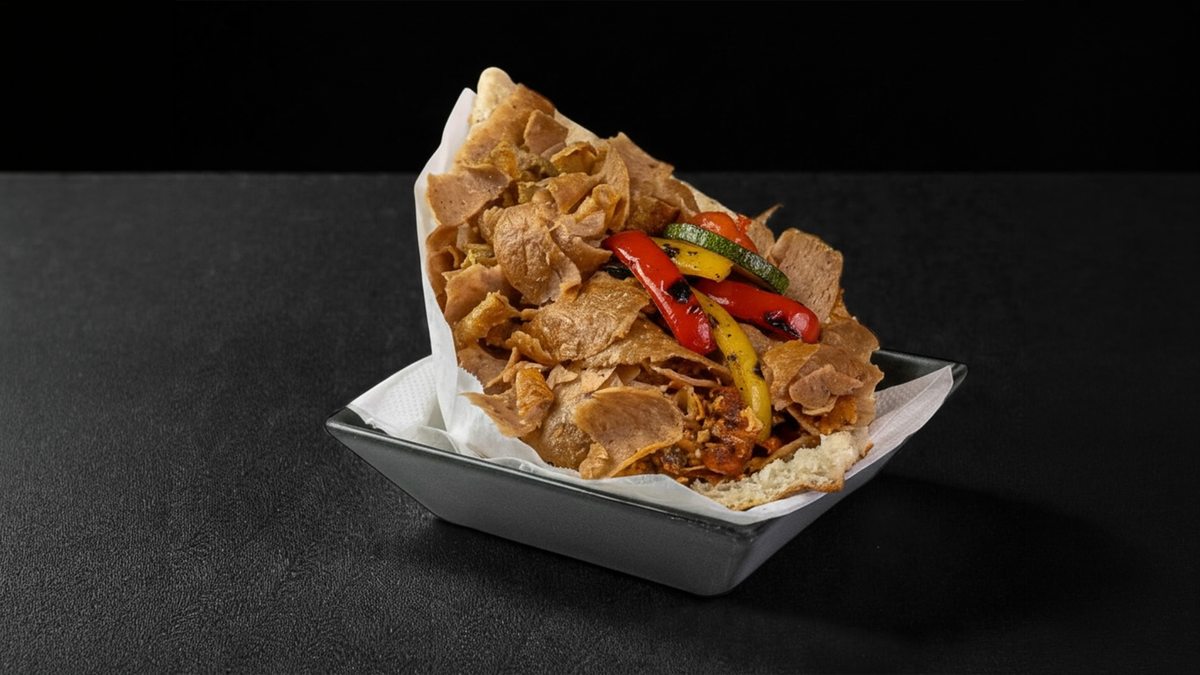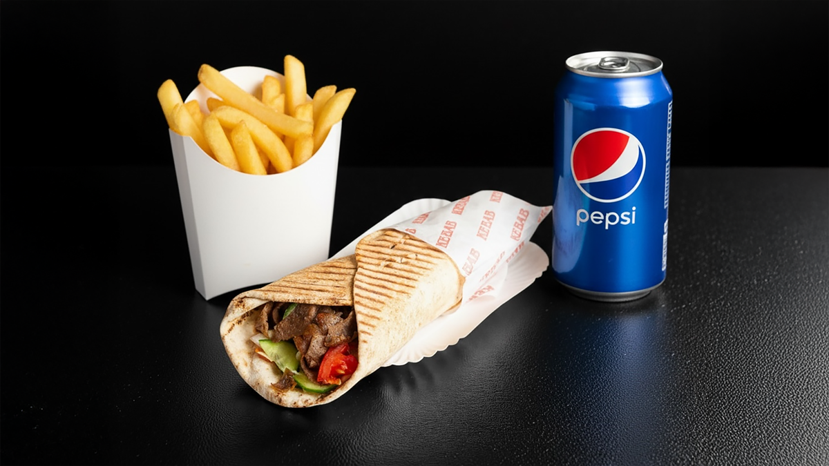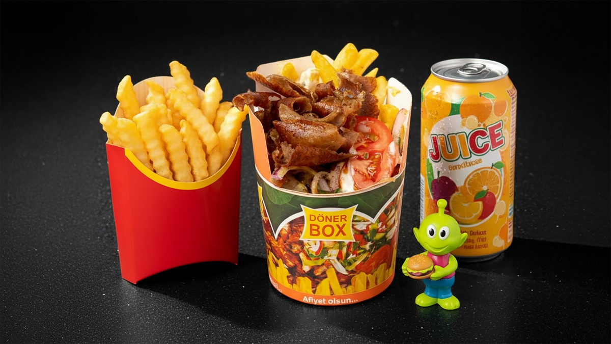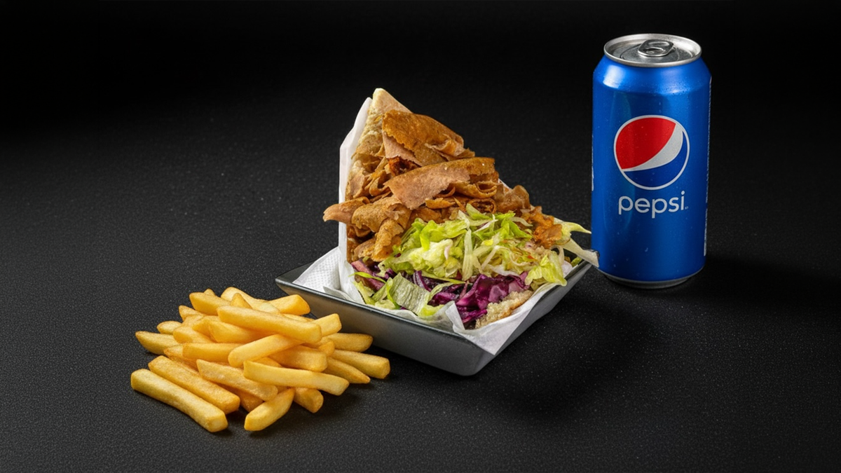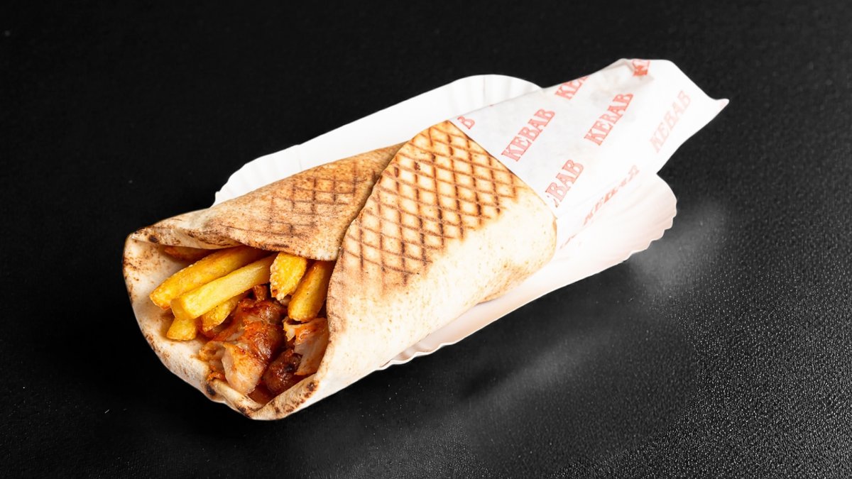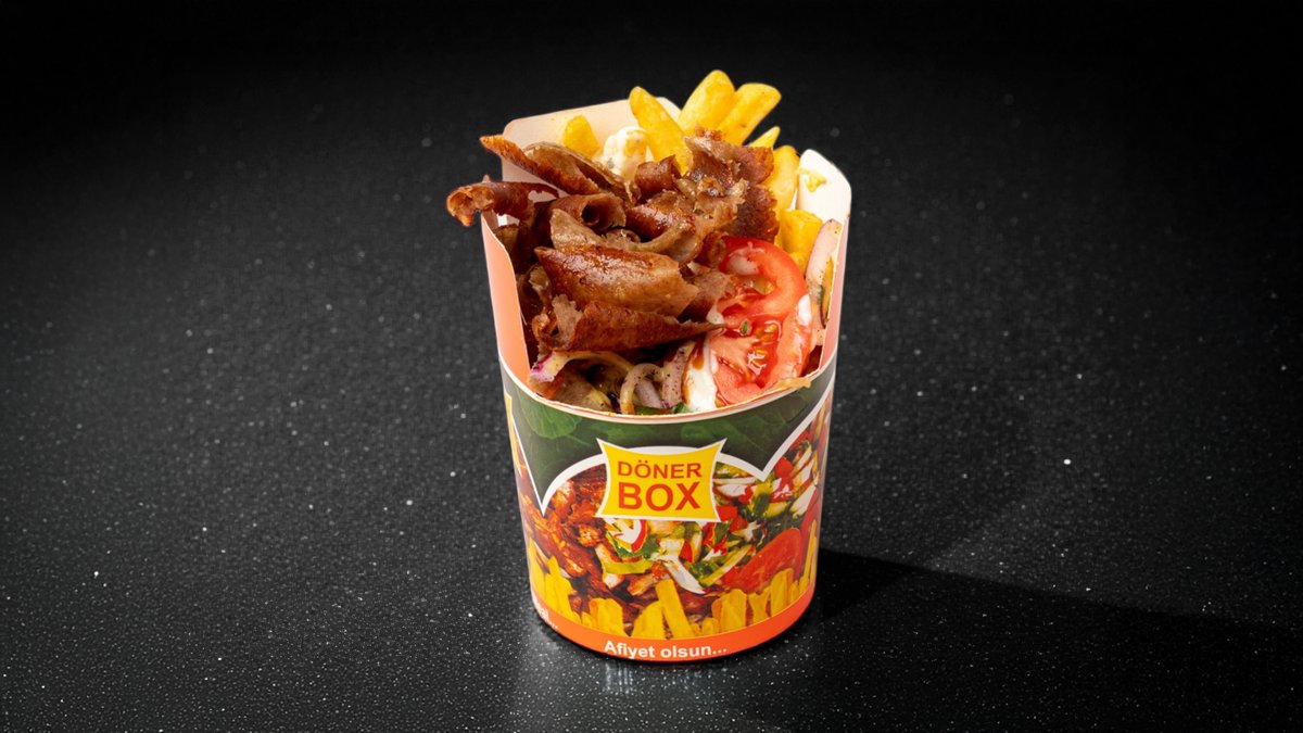maso, hranolky, dresink, na výběr malý / velký kebab box