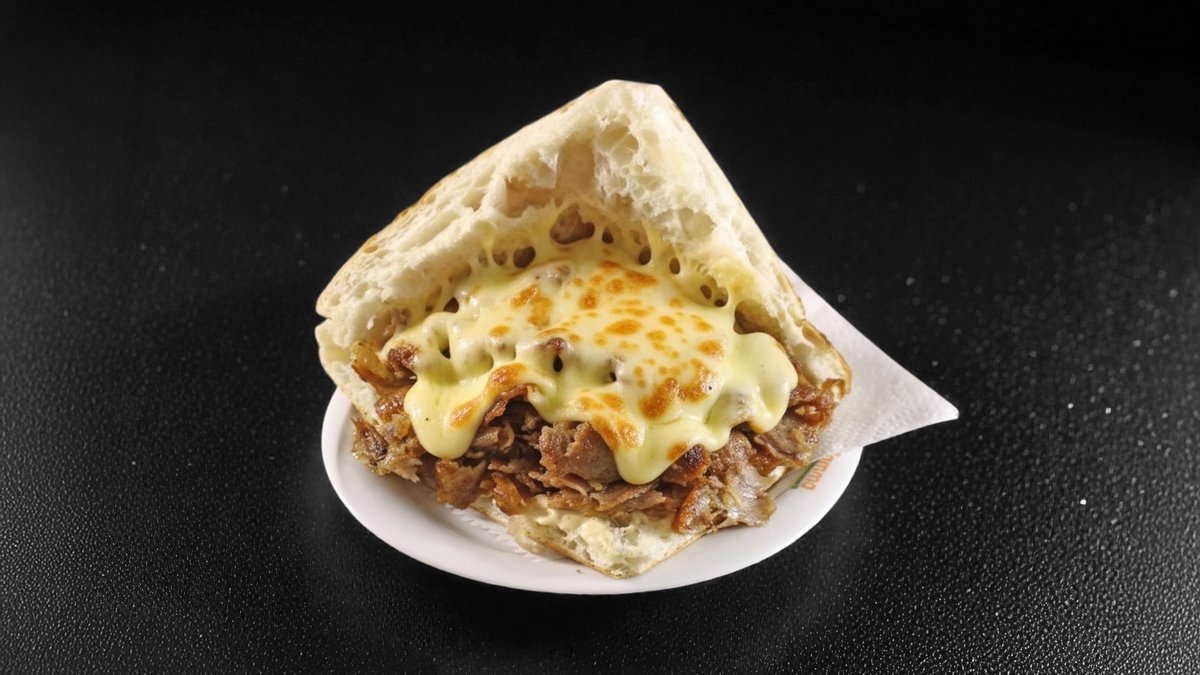 pečený brambor, sůl, máslo, mozzarella, maso, dresink