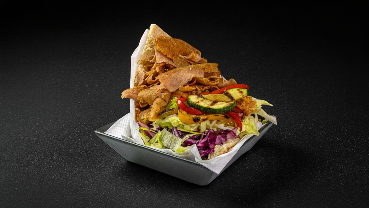 maso, salát, rýže, dresink, na výběr malý / velký kebab box