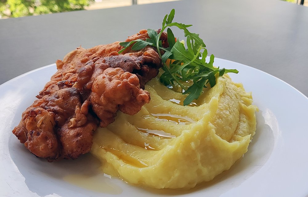 Kuřecí prsíčko smažené v těstíčku, bramborová kaše