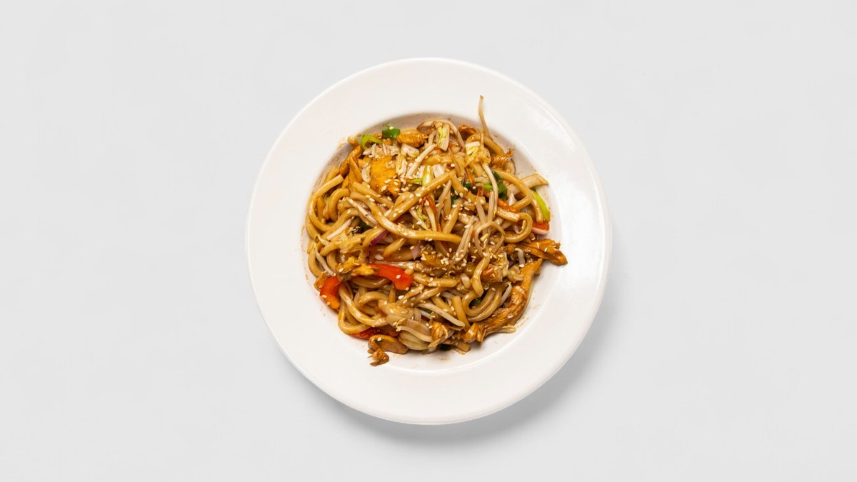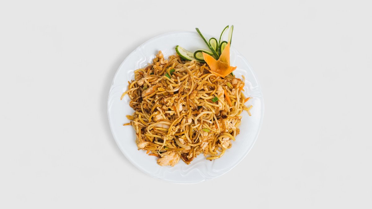 Kuřecí gyros Příloha: A. Smažené nudle, B. Hranolky, C. Smažená rýže.